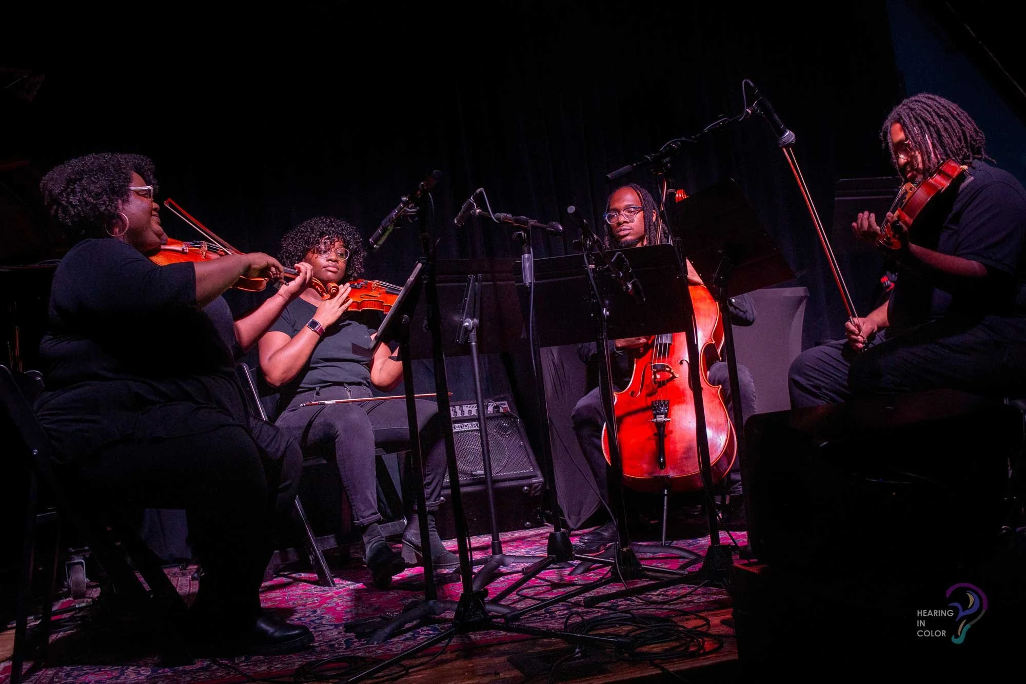 The heart of what we do highlights the importance of sharing platforms with composers and musicians of varying cultures and stories that have been misrepresented in the classical canon. Hearing in Color produces concerts and events led, performed, and programmed by individuals in those same communities. We showcase the musical work of Black, Indigenous, composers of color, who often go unnoticed due to the overrepresentation of white, male, European composers. And we believe that creating space for those historically excluded people creates equity in the arts.